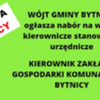OGŁOSZENIE O NABORZE NA STANOWISKO KIEROWNIKA ZAKŁADU GOSPODARKI KOMUNALNEJ W BYTNICY - dostępne jest pod linkiem: https://bip.bytnica.pl/wiadomosci/1203/wiadomosc/605827/ogloszenie__o_naborze_na_stanowisko_kierownika_zakladu_gospodark (strona BIP - zakładka praca)