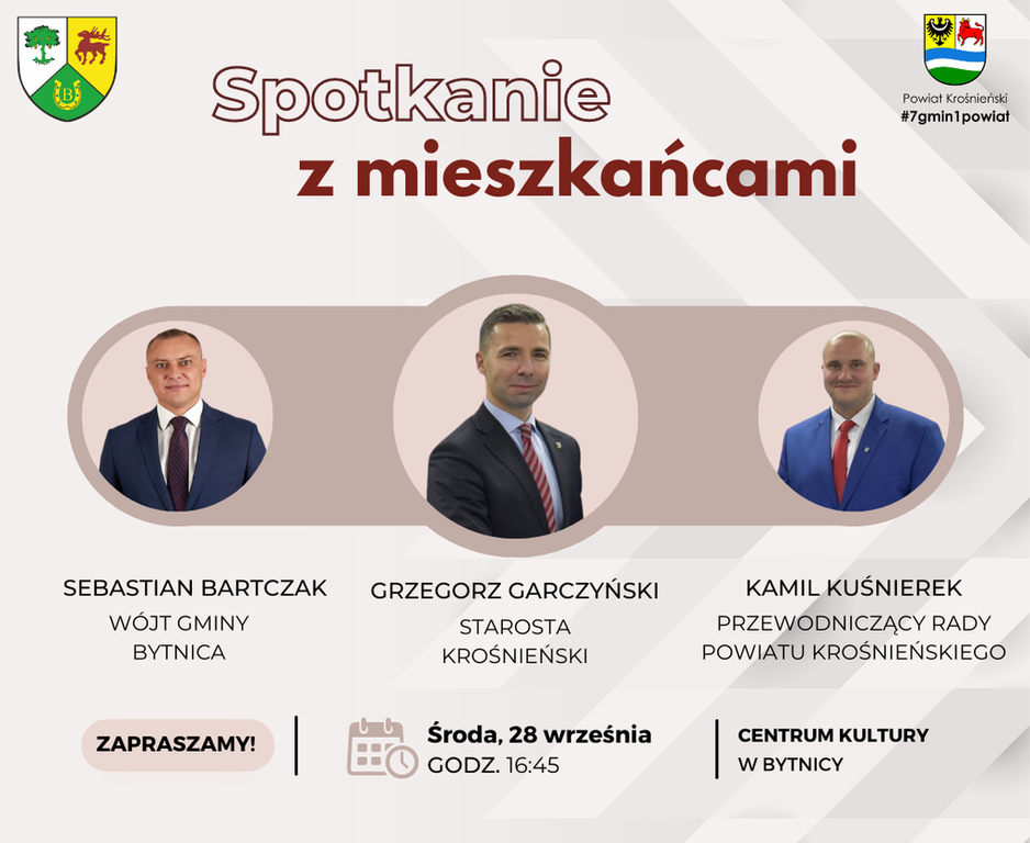 Jutro o godz. 16:45 w Centrum Kultury w Bytnicy odbędzie się spotkanie ze Starostą Krośnieńskim Grzegorz Garczyński oraz Przewodniczącym Rady Powiatu Kamil Kuśnierek. Gospodarzem spotkania będzie Wójt Gminy Bytnica Sebastian Bartczak Zapraszamy Państwa do aktywnego udziału.